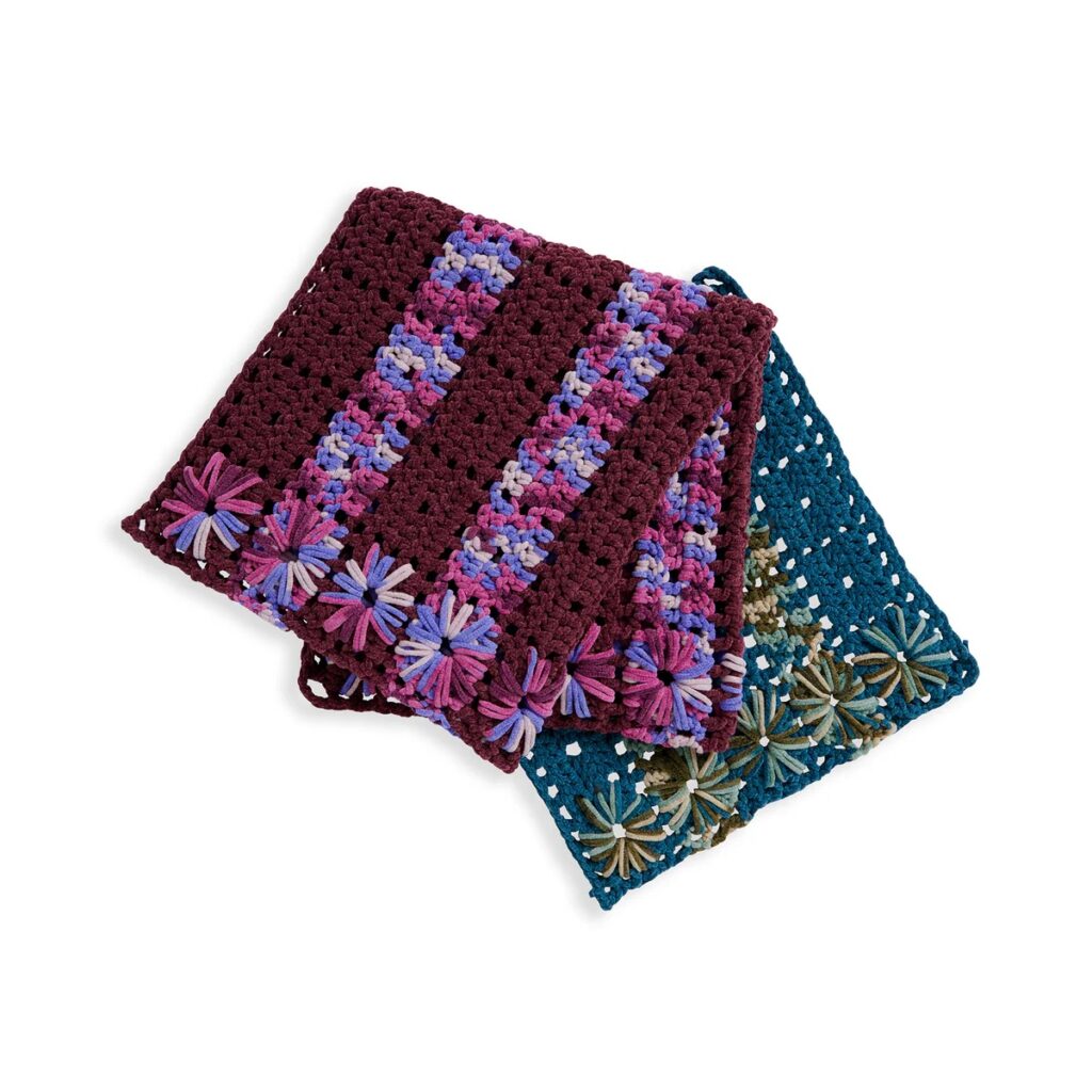 6. Flowers Hot Pad & Coaster Set Free Crochet Patterns