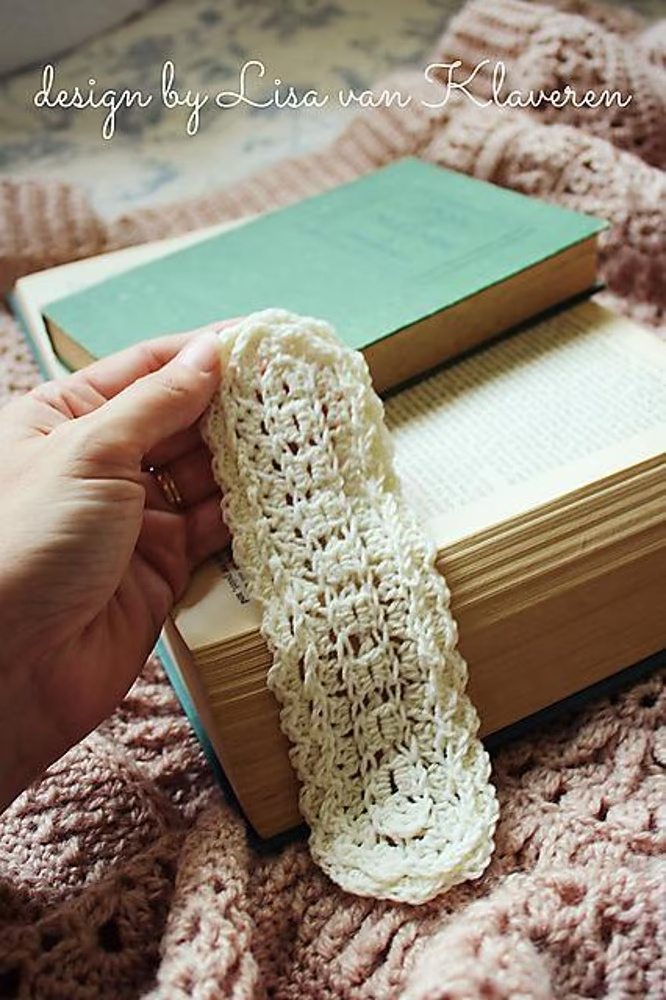 This elegant accessory is worked flat as a single piece, resulting in a sophisticated, scalloped design that sits beautifully within the pages of any book.