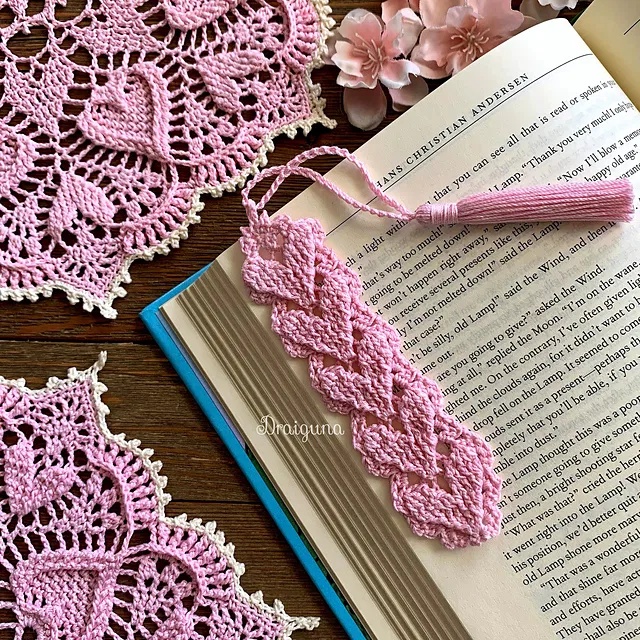 26. Tapestry with hearts Free Crochet Bookmark Pattern