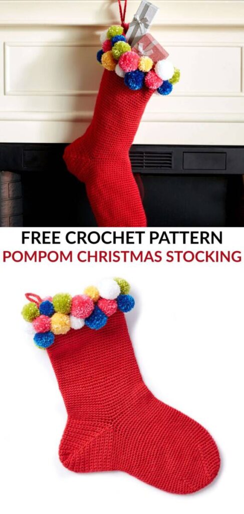 8. Pompom Free Crochet Christmas Stocking Pattern