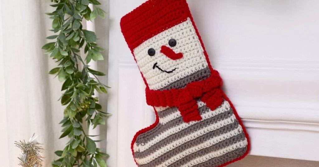 9. Snowman Free Crochet Christmas Stocking Pattern