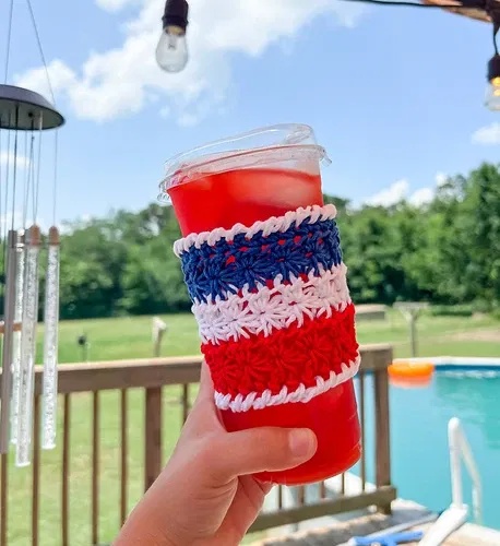 27. Red, White, & Blues Cup Cozy Free Crochet Pattern