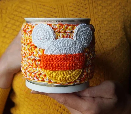 26. Candy Corn Free Crochet Cup Cozy Pattern