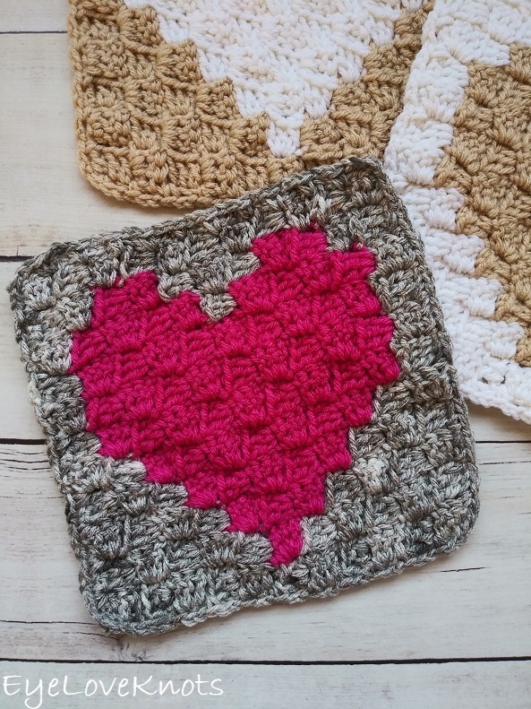 23. C2C Enamored Heart Afghan Square Free Crochet Granny Square Heart Pattern