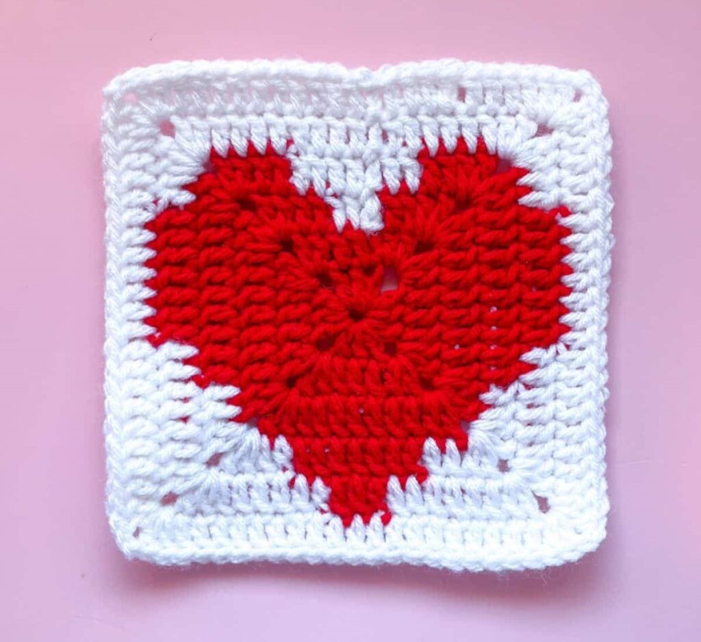 10. Solid Heart Granny Square Free Crochet Granny Square Heart Pattern