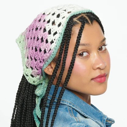 Keep your hair perfectly in place with this charming crochet bandana crafted from Caron Skinny Cakes yarn.