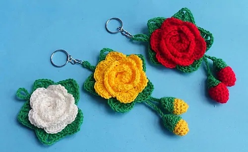I am sure I am not the only one who sees how cute this Rose Flower Crochet Keychain looks.