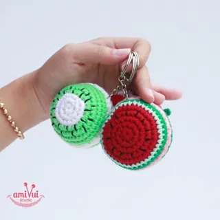 47. Watermelon Amigurumi Free Crochet Keychain Pattern