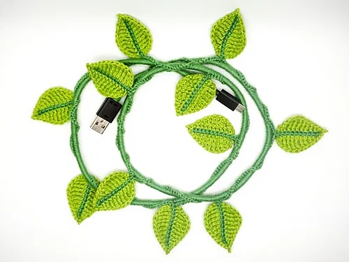 Protect your cables in style with this gorgeous Cord Ivy Crochet Leaf Pattern.