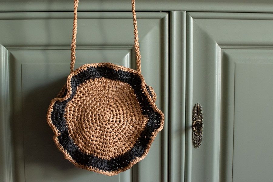 13. Glamorous raffia Free Crochet Mini Shoulder Bag Pattern