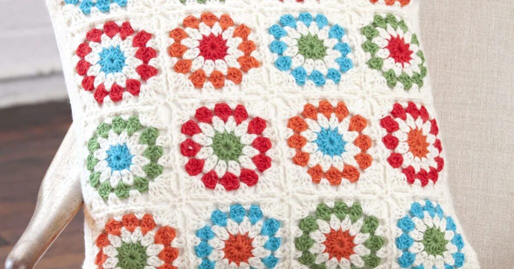 Elevate your home décor with the gorgeous Flower Patch Pillow, an ideal project for intermediate crocheters.