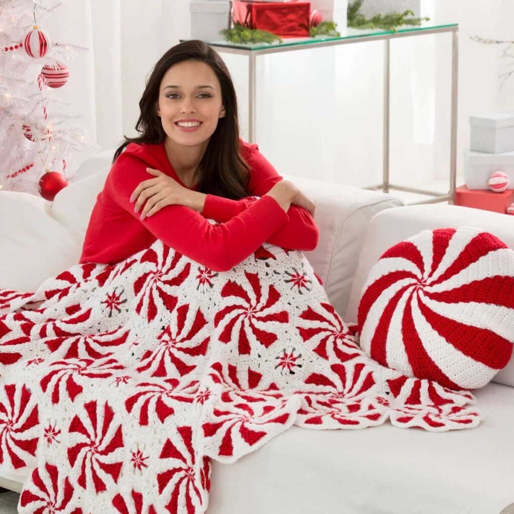 The Peppermint project results in a vibrant, festive pillow perfect for holiday decorating.