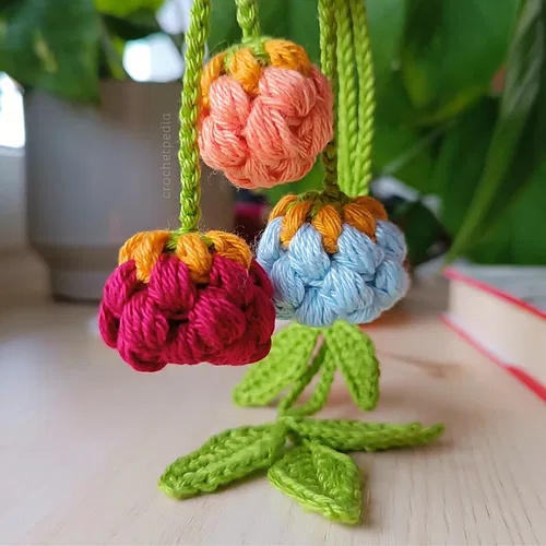 3. Flower Bookmark Free Crochet Puff Flower Pattern