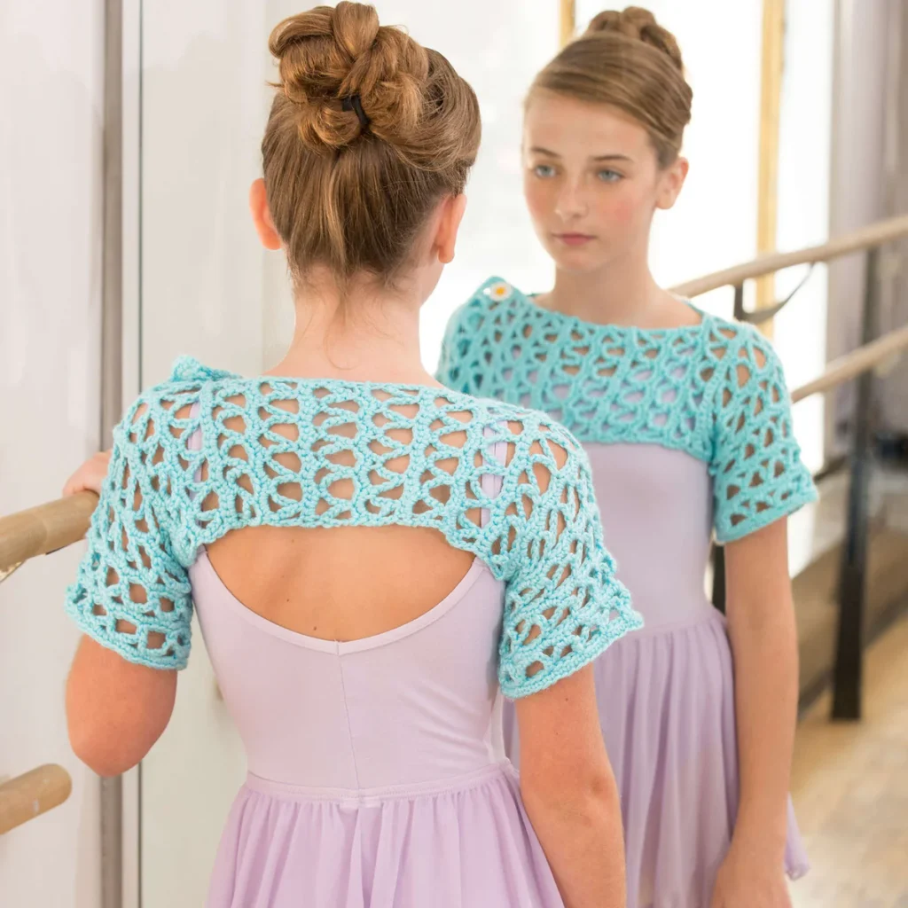 Whether completing her uniform for ballet class or simply dressing up a simple outfit of jeans and a tee, this shrug is wonderfully versatile.