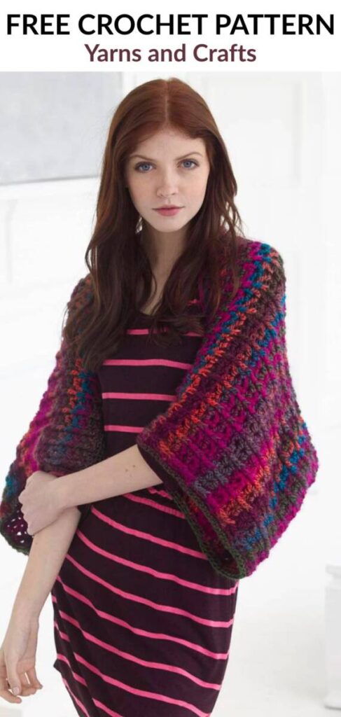 This is like a professional-grade shrug; it’s beautiful, colorful, and fun to crochet.