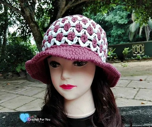 This crochet hat design would add elegance to your outfit.