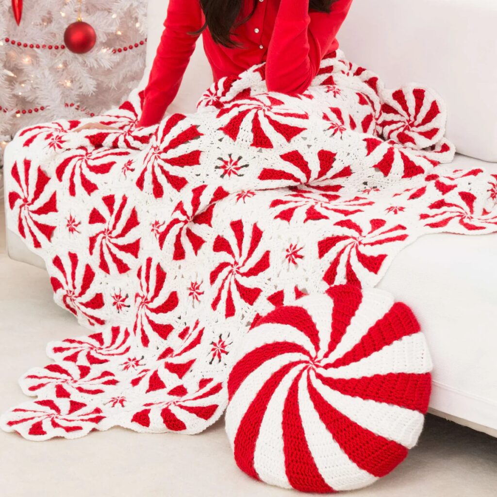 23. Peppermint Free Crochet Throw Blanket Pattern