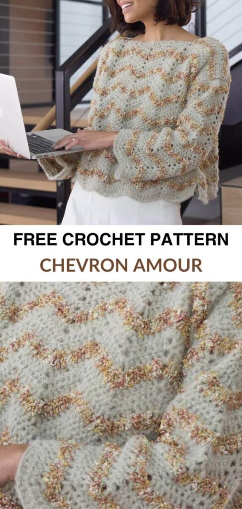 Construct the eye-catching Chevron Amour Top pattern by using Premier® Yarns ELLE by Me Odette and Premier® Yarns ELLE by Me Aurelie.