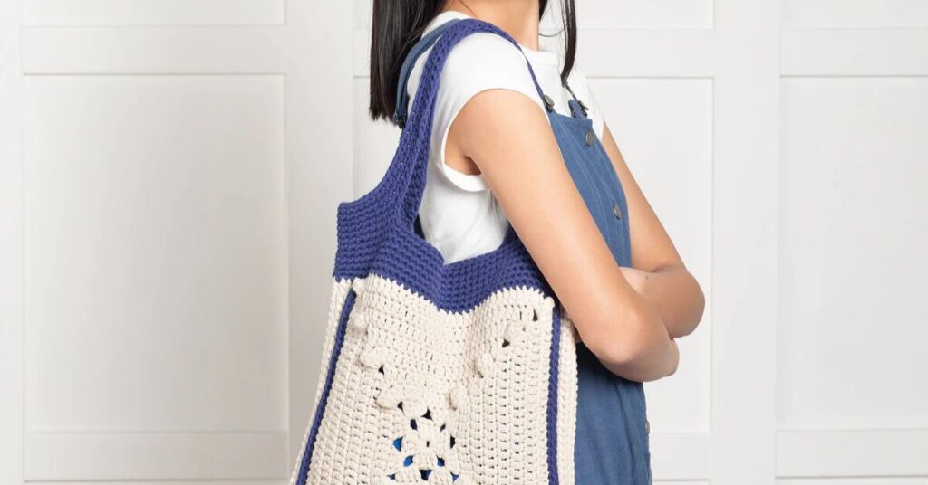 This tote is ideal for summer, whether you’re heading to the beach or carrying your crochet project while traveling.