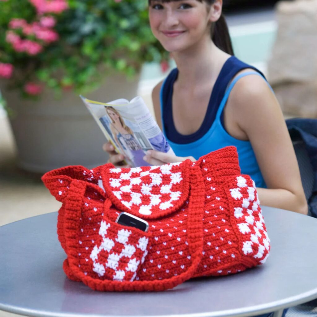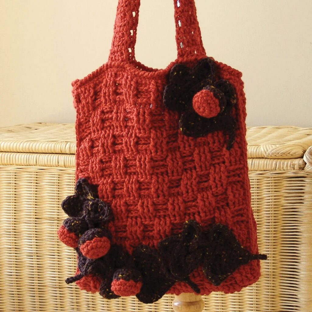 This tote bag, crocheted with Red Heart Chic Sheep, is suitable for beginners.