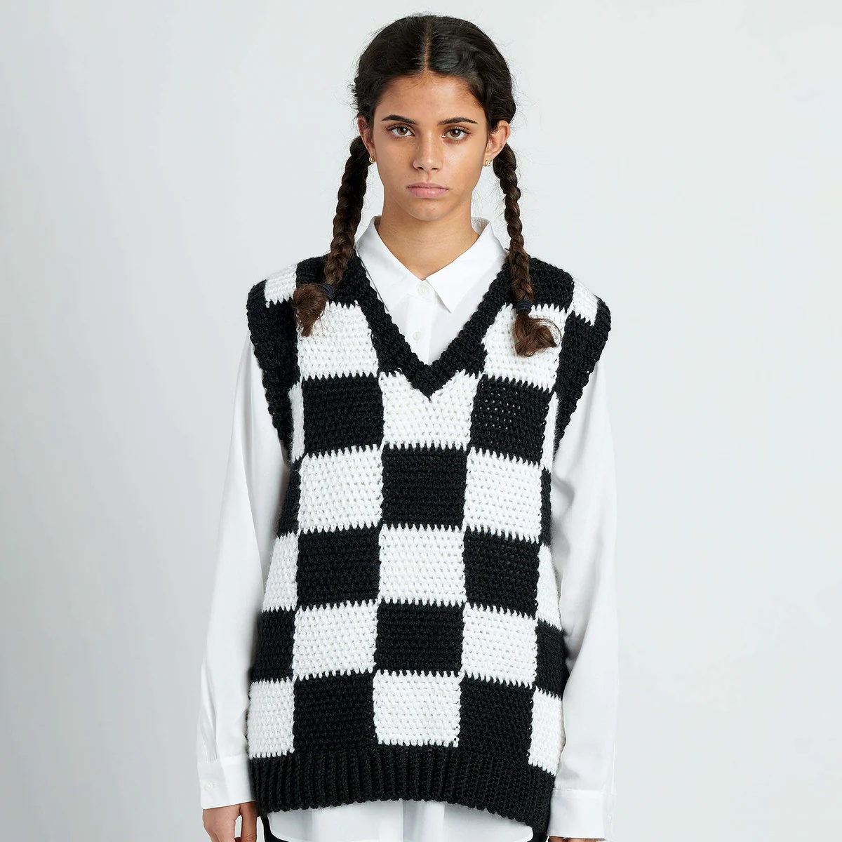 This Crochet Check Mesh Vest is too adorable to ignore.