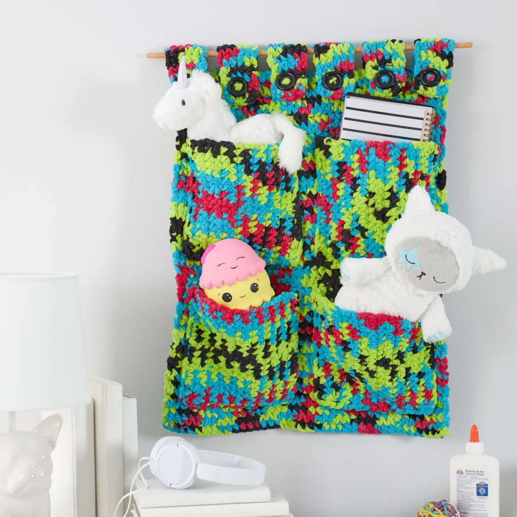 Pack the compartments of this simple crochet wall organizer, designed specifically for the plush texture of Red Heart Sweet Home yarn.