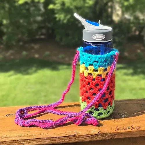 21. Simply Scrappy Free Crochet Water Bottle Holder Pattern